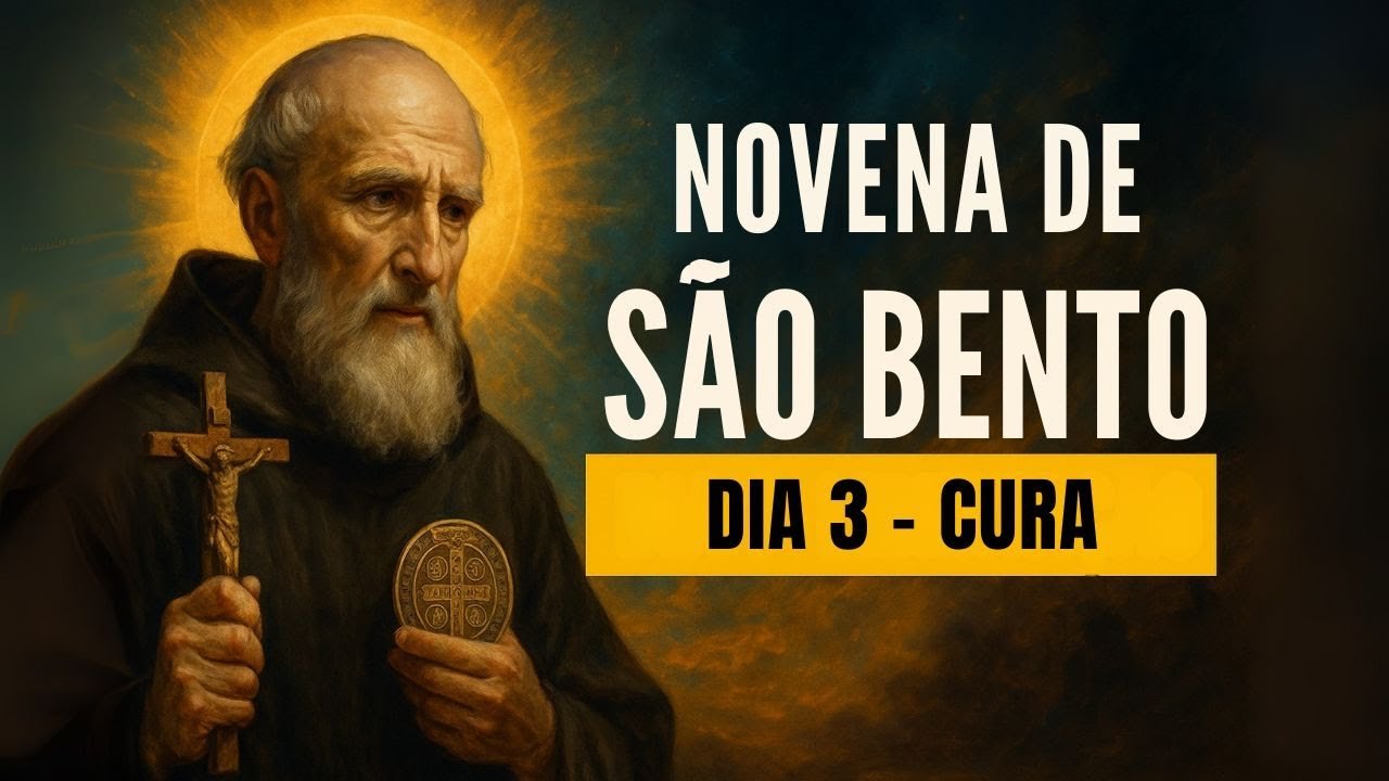 Sinta a poderosa intercessão de São Bento no Terceiro Dia da Novena de Cura! 🙏 Neste vídeo você rezará a oração especial do terceiro dia, invocando a proteção da Cruz Sagrada e pedindo a cura do corpo, da mente e do espírito. Deixe-se envolver pela fé enquanto repetimos juntos “A Cruz Sagrada seja a minha luz”, vencendo toda enfermidade e aflição.